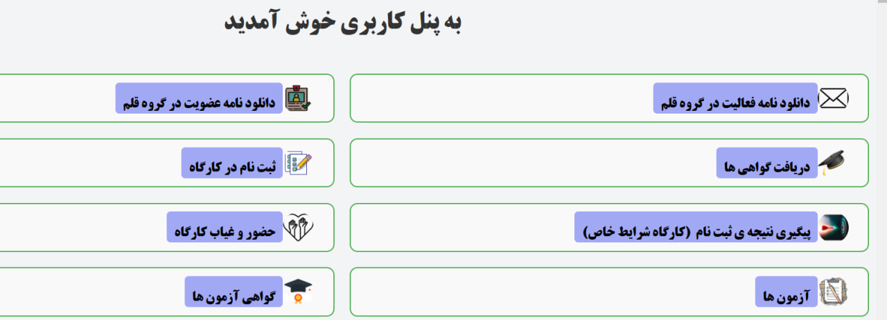 همچنین لازم به ذکر است که این بخش نیز دارای کد اعتبارسنجی است و هرگواهی با کد اعتبارسنجی آن معتبر خواهد بود و در بخش بررسی اعتبار نیز ، گزینه اعتبار گواهی آزمون ها افزوده شده و در بخش خلاصه فعالیت فرد در پنل کاربری ، گزینه آزمون ها و جزئیات آن افزوده شده است و در بخش نامه کل فعالیت نیز بخش آزمون ها افزوده شده است.