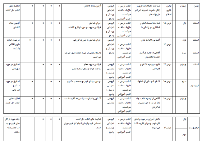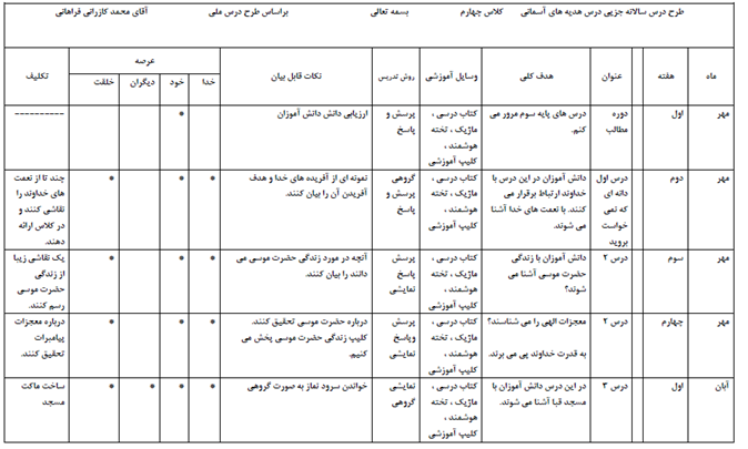 در ادامه یک نمونه طرح درس هدیه آسمانی ابتدایی را باهم خواهیم دید: